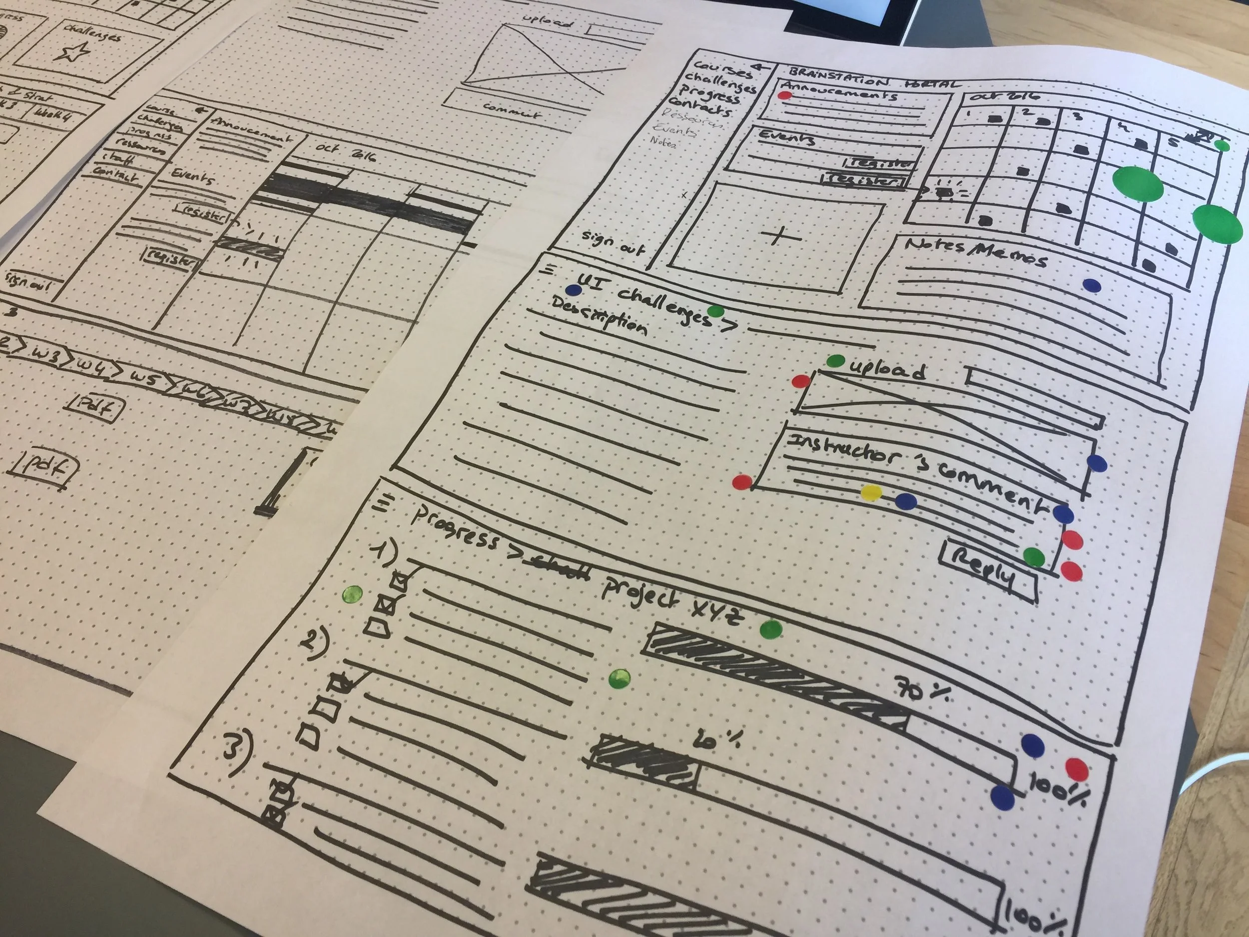 Finally, we created a storyboard using the voted sketches to visualize students journey using the new portal. Our portal redesigned included a new dashboard, a new course material section, a resources section and a challenges section.