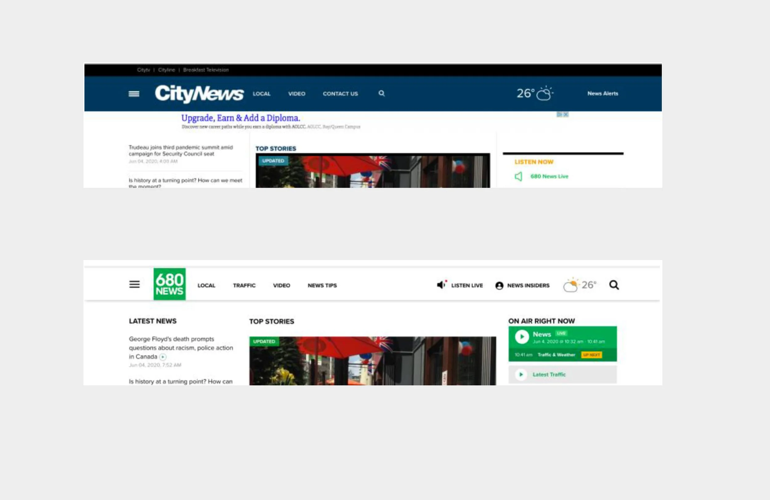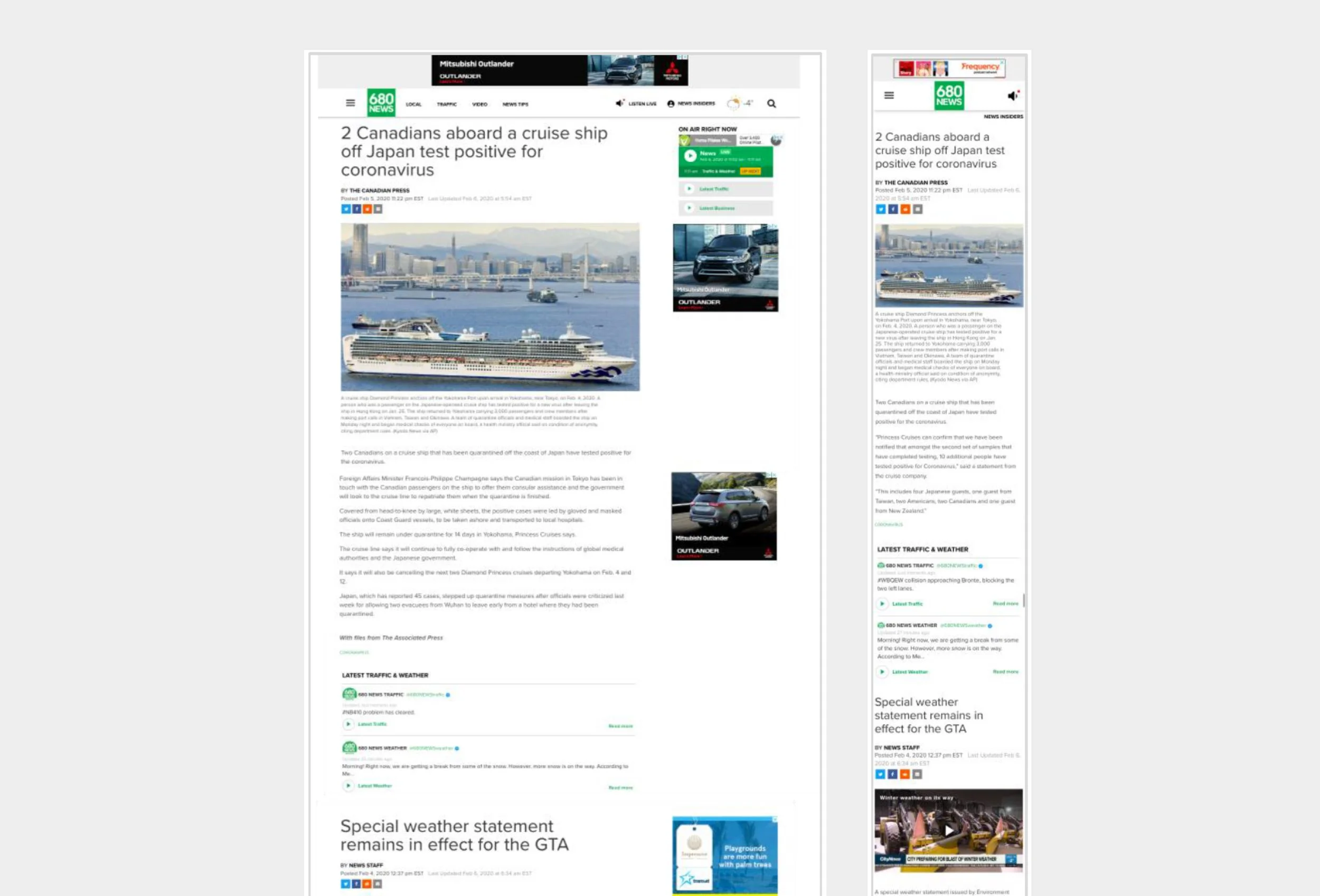 Since CityNews Toronto and 680 News websites looked very similar and were managed by the same editorial and digital teams the News leadership decided to merge them into one website. All the local properties would follow the same treatment, each local CityNews website would merge with its local radio website.