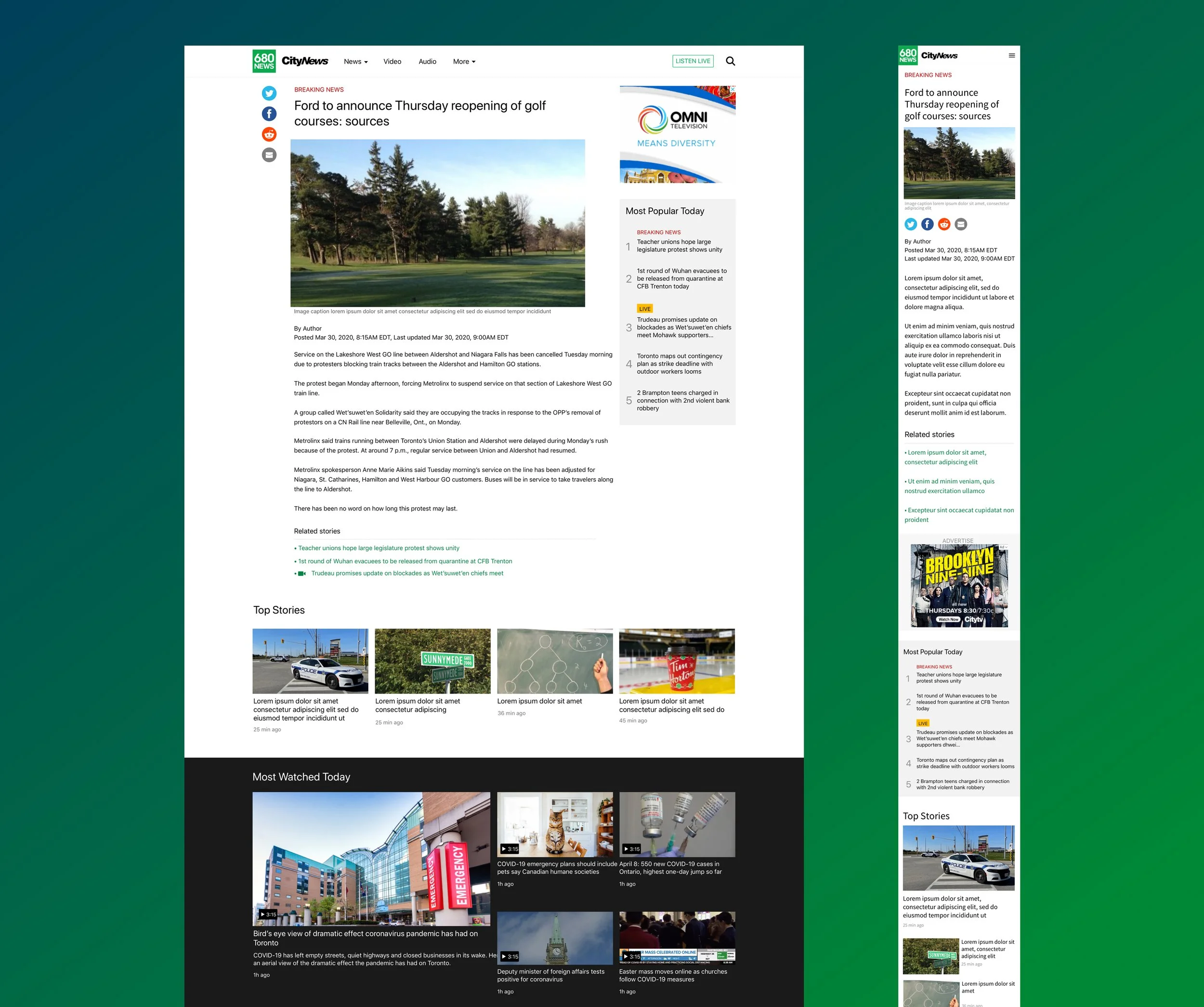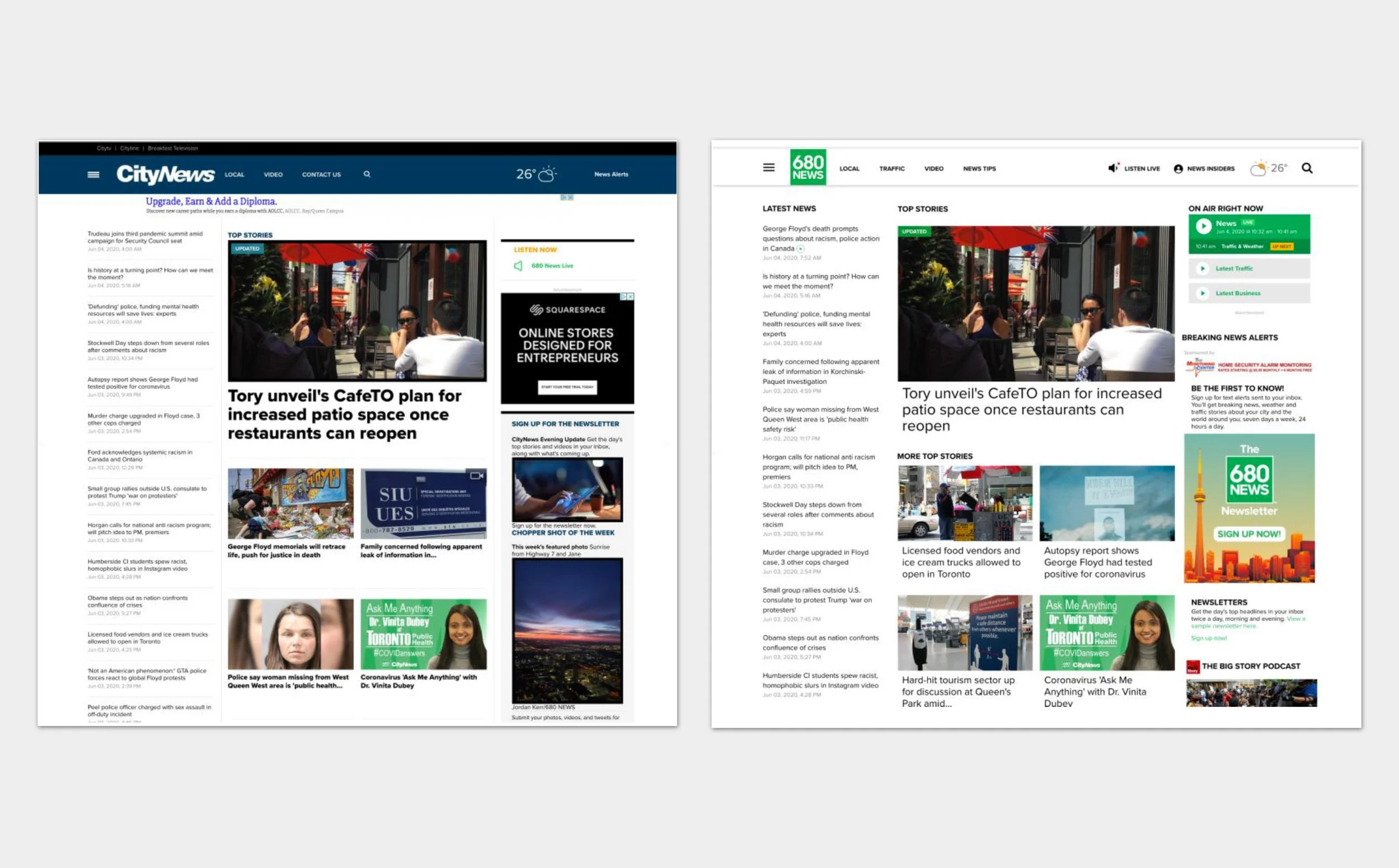 Since CityNews Toronto and 680 News websites looked very similar and were managed by the same editorial and digital teams, the News leadership decided to merge them into one website. All the local properties would follow the same treatment, each local CityNews website would merge with its local radio website.